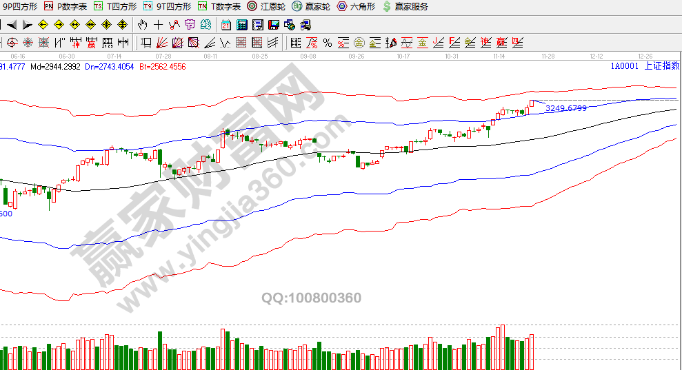 江恩看盤綜述:依據贏家江恩技術工具分析得出:周二,滬指繼續新高觸及3250點附近,但量能稍有不足,此位置或有沖高震蕩需求,整體上,在深港通刺激下整體將保持強勢,尾盤亮點一直表現低迷的創業板直線拉升,似有資金抄底跡象,一旦主板上攻失去量能支撐,風格或將想轉向小盤股,本周時間窗口在25日附近,操作上,重點關注央企改革、一帶一路標的。