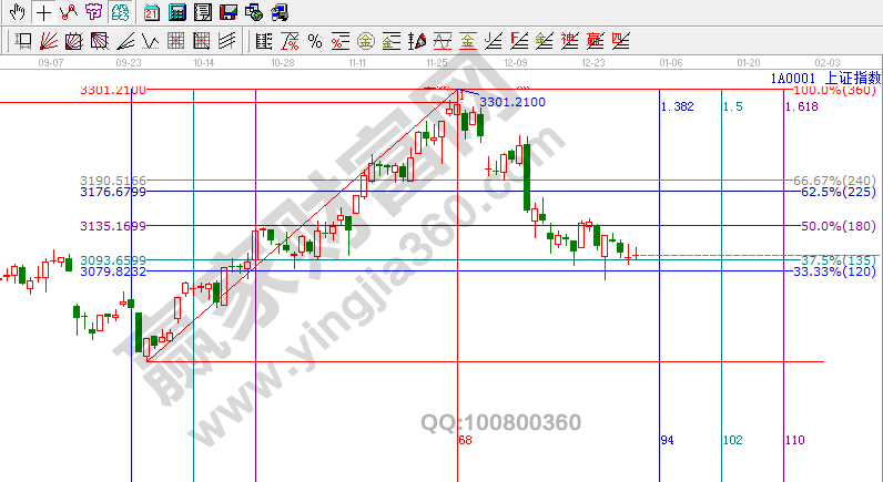 江恩看盤綜述:依據贏家江恩技術工具分析得出:滬指繼續縮量整理在135度3090點支撐上方,下方120度位置是3079點,年末資金面依舊緊張,量能持續萎縮,延續了以往的規律,總體上,隨著深港通、養老金入市步伐的加快以及銀行資金進入的可能性增強,另外國企改革進入深化階段、一帶一路加快推進,市場總體向好情緒也將升溫。時間上,留意1月5日左右,操作上,可暫時考慮持股,重點關注政策導向的國企改革、以及高送轉等題材股的階段性機會。
