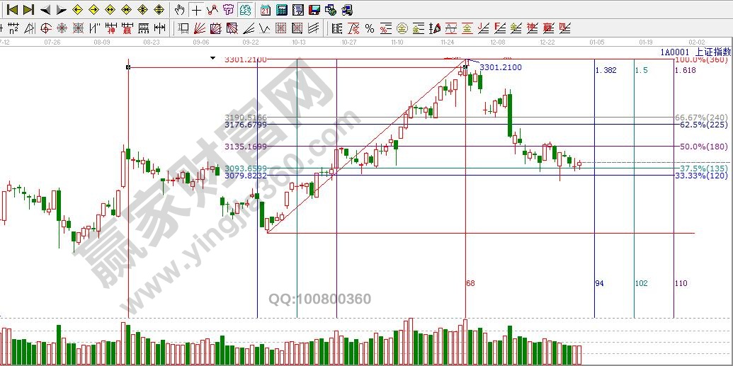 ★依據贏家江恩理論系統黃金時間周期線提示:股指縮量整理,接下來下一時間點是1月5日左右。