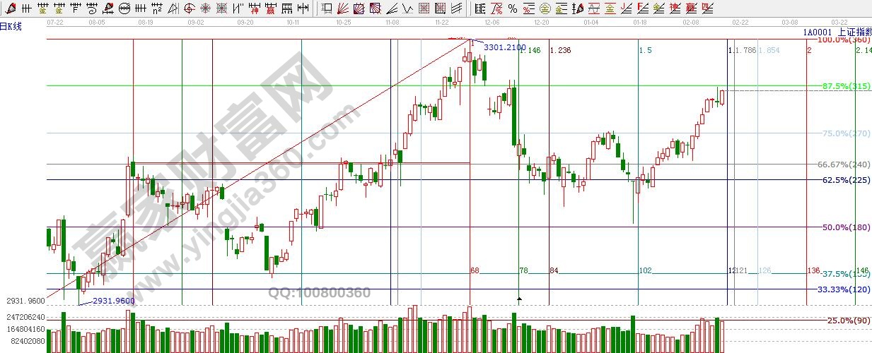 ☆依據贏家江恩理論系統江恩波段百分比線提示:16年5月26日2780點--11月29日3301點做波段百分比,315度阻力3236點附近,下方支撐位270度線3171點附近,周五短周期留意3232點。