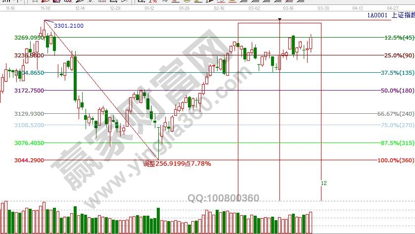 ☆依據贏家江恩理論系統江恩波段百分比線提示:經過短期整理之后,滬指展開上攻,盤中突破45度線3269點附近,短線支撐3260點,3250點。