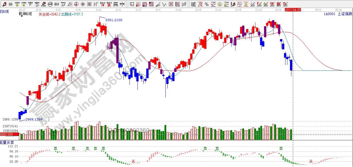 ☆依據贏家江恩理論系統能量買賣提示:綠色看空能量柱,依據規則看空。