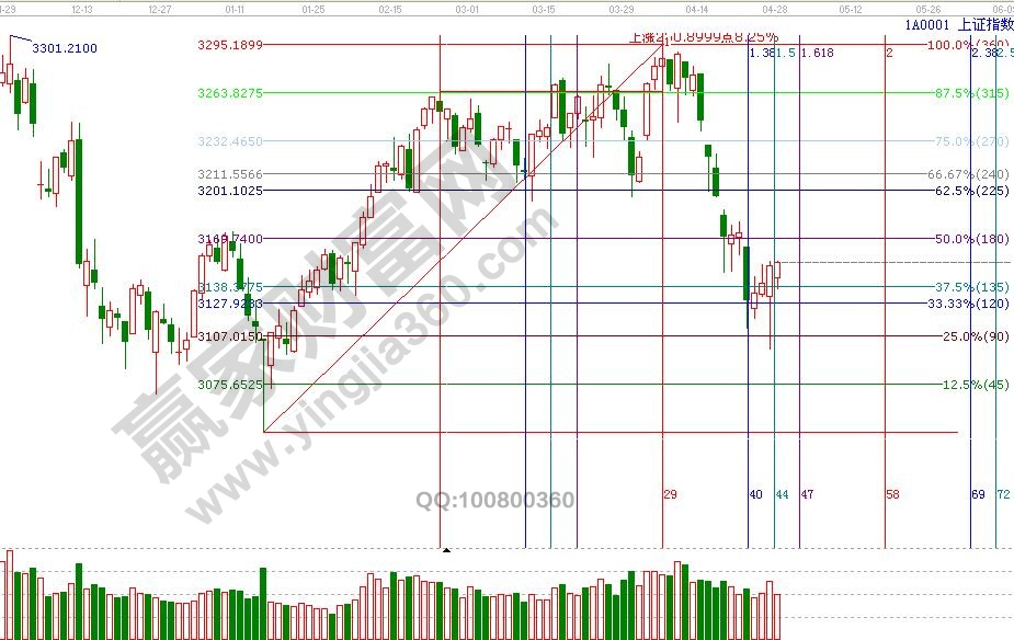 江恩看盤綜述:依據(jù)贏家江恩技術(shù)工具分析得出:目前,滬指各周期均處于極反通道藍(lán)色超跌區(qū)域,隨著成交量的回升,市場操作情緒有所回升,指數(shù)短期還有反彈空間,節(jié)后進(jìn)入五月份,次新股、人工智能以及一帶一路能否迎來反彈,對于節(jié)后指數(shù)的反彈有重要的意義。反彈目標(biāo)位重點(diǎn)看缺口3189--3196點(diǎn)。時間上,假期的因素,時間窗口順延3天,是5月04日。操作上,整體趨勢處于生命線之下,弱勢,倉位控制在3-5成。