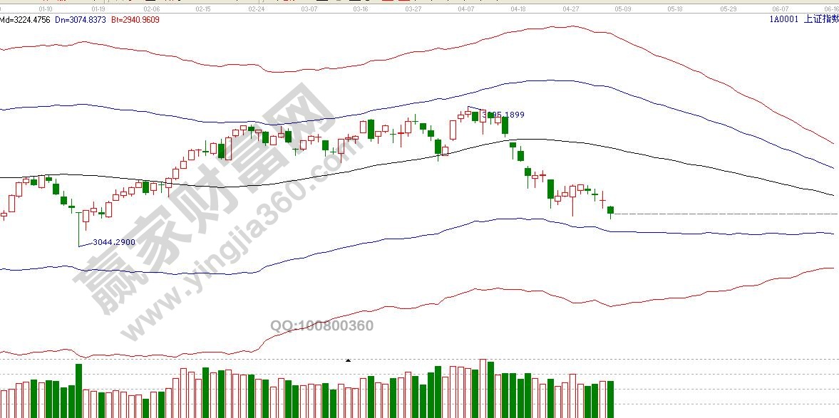 ☆依據贏家江恩理論系統極反通道提示:周五,早盤指數低開低走,破位3100點,距離日線藍色線3070點一步之遙,整理后,依然看超跌反彈。倉位控制在3-5成。