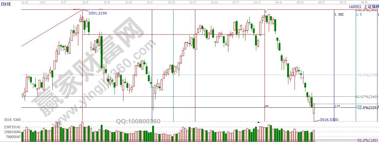☆依據(jù)贏家江恩理論系統(tǒng)極反通道提示:滬指再創(chuàng)新低,破位藍(lán)色線(xiàn),依據(jù)規(guī)則,物極必反,短期整理后應(yīng)有超跌反彈機(jī)會(huì),倉(cāng)位控制在3-5成