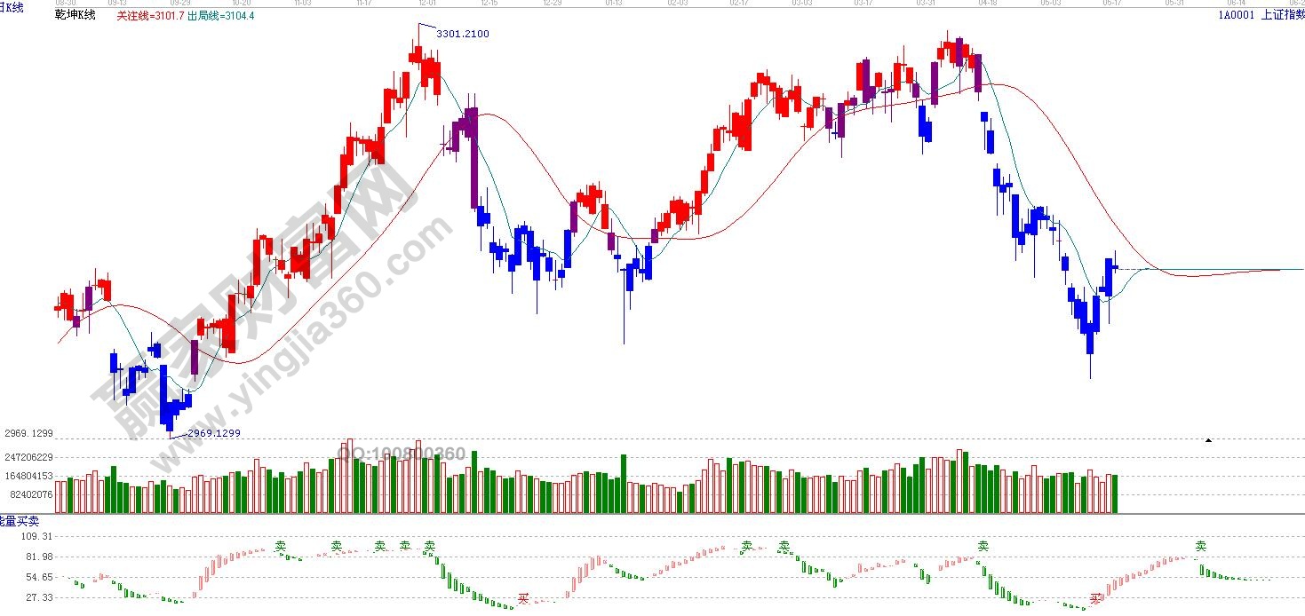☆依據贏家江恩理論系統乾坤K線提示:短線出局線之上,紅色關注線之下,依據規則,短線看多。