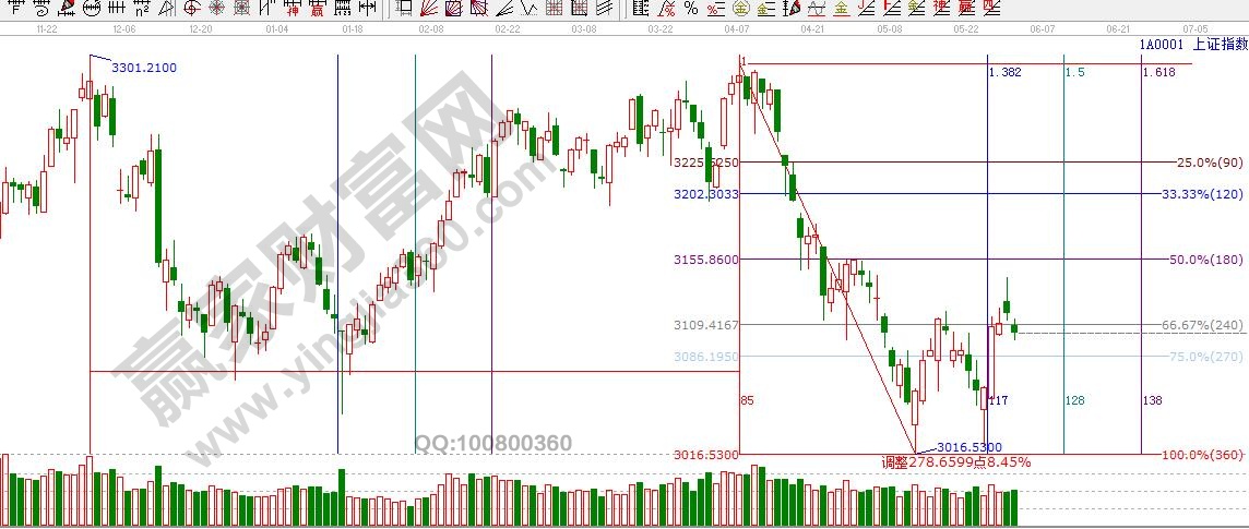★依據贏家江恩理論系統江恩波段百分比線提示:周四,滬指低開破位3109點,下方支撐是270度3086點附近。