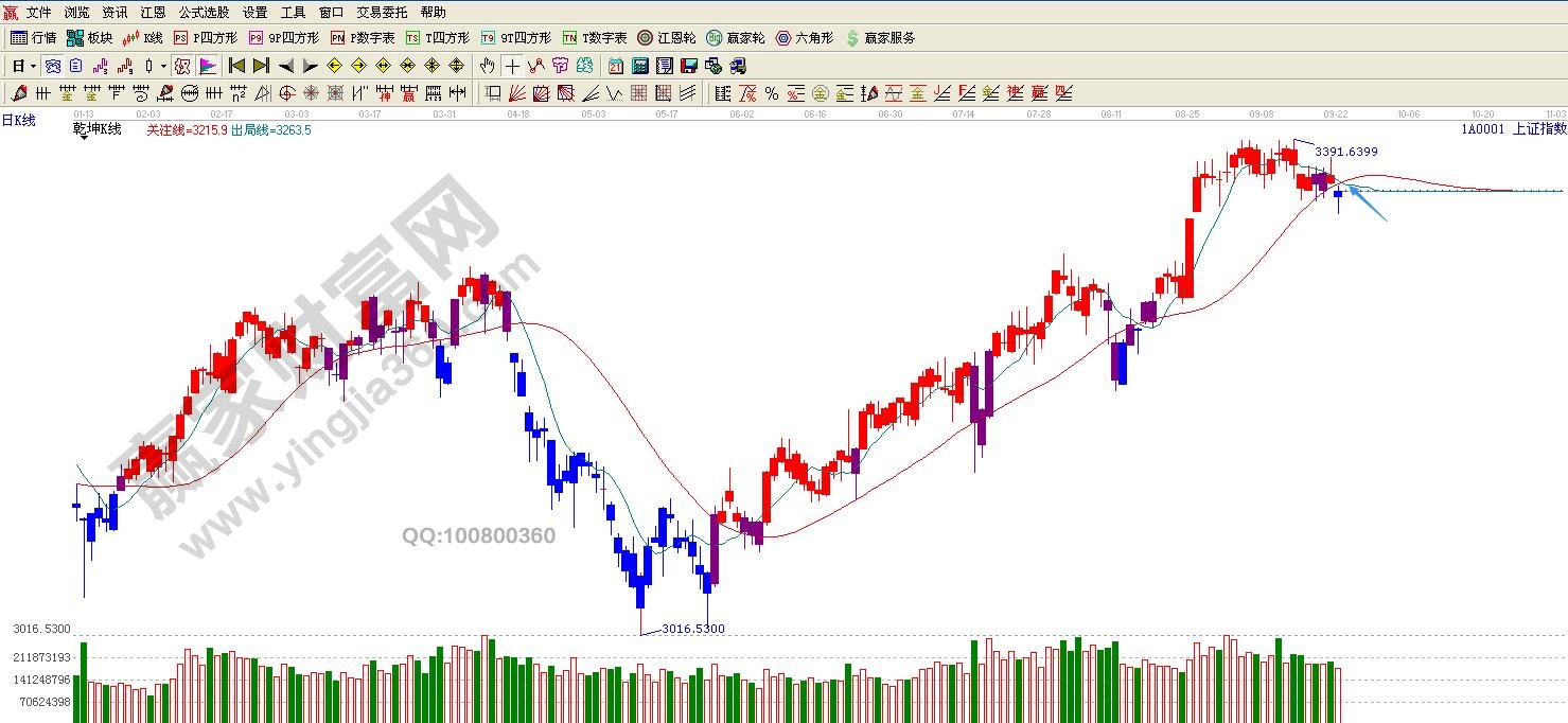 ☆依據贏家江恩理論系統乾坤K線提示:滬指破位紅色關注線,k線轉入綠色休息區,依據規則,控制倉位,保持謹慎。