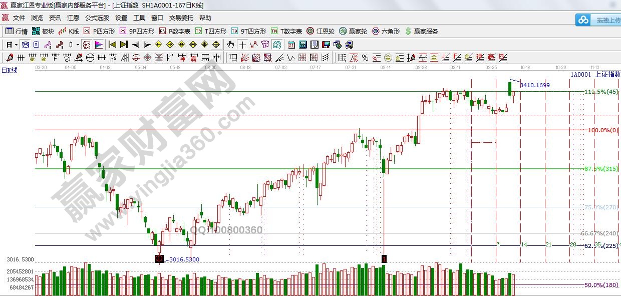 ★依據(jù)贏家江恩理論系統(tǒng)黃金時間周期線提示:短期時間點留意,10月12日。