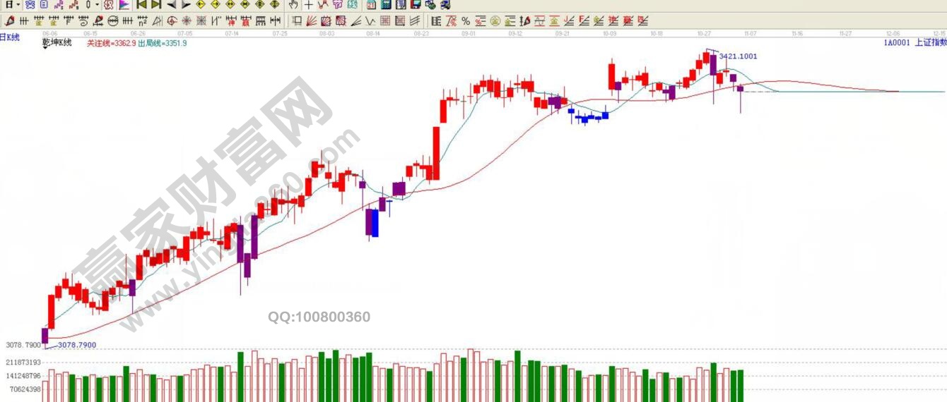 ☆依據贏家江恩理論系統乾坤K線提示:紫色警示k線,破位紅色關注線,依據規則,關注線之下,保持謹慎。