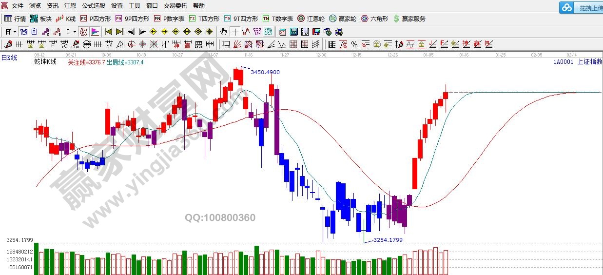 ★依據贏家江恩理論系統乾坤K線提示:紅色關注線之上,紅色可操作區域,趨勢多頭。