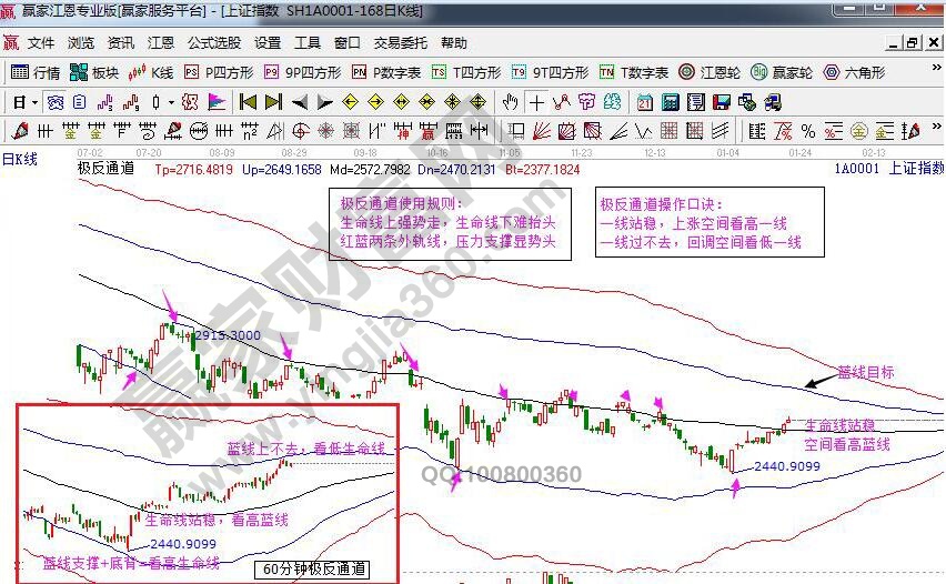 ★依據(jù)贏家江恩理論系統(tǒng)極反通道提示: 日線連續(xù)兩日收在生命線上方,按照規(guī)則量能保持且3天回踩不破,則確認生命線突破的有效性,空間上看高藍線2680方向。附60分鐘極反通道圖顯示,股價運行到藍線2620壓力區(qū),短線不能強勢突破,仍有回落生命線需求。則,短線支撐參考生命線2579點,壓力參考60分鐘藍線2630點。