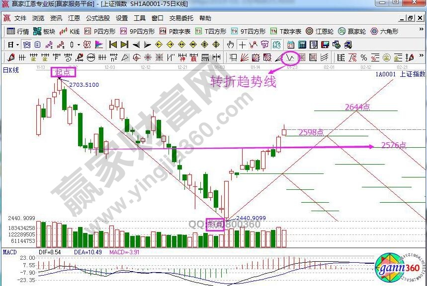 ★依據(jù)贏家江恩理論系統(tǒng)轉(zhuǎn)折趨勢線提示:以2703為起點,2440為終點做轉(zhuǎn)折趨勢線,周一指數(shù)剛好高開在2598后獲得支撐震蕩走高。當前2598為支撐,站穩(wěn)則看高壓力2644點,失守則考驗2576點。