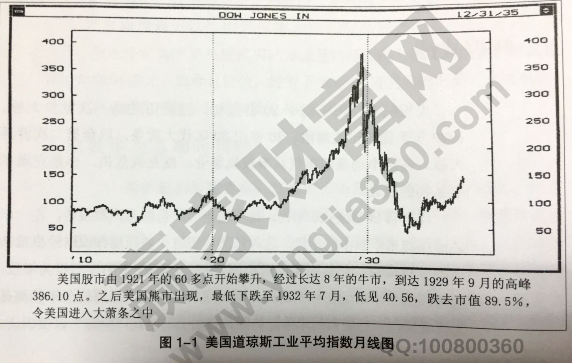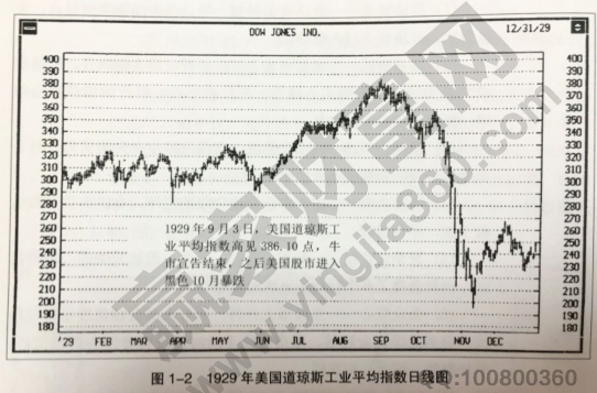 江恩在1928年11月23日的時候發表了一份關于美國股市的預測報告,報告中預測了1929年的美國道瓊斯工業平均指數的走勢。江恩在報告中也明確指出,1929年將會達到大牛市終結的循環。由于這次的牛市是從1921年開始的,也是美國史上最長的一次牛市,然而股票的價格已經達到了不正常的水平。所以,當熊市來臨的時候,1929年將會是一次極為劇烈的暴跌。而事實證明,江恩的預測是完全正確的,在1929年的9月份道指見到386.10點之后開始大幅下跌了3年,而在1932年7月分的時候最低見到了40.56,比著高峰的時候下跌了89.5%。