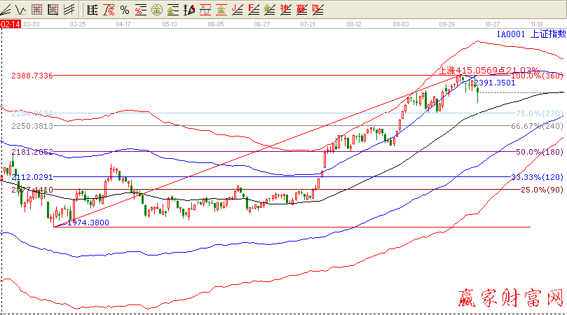 技術分析:依據贏家江恩系統(tǒng)極反通道提示,昨日試圖嘗試突破極反通道藍色上軌線未果,從圖中可以看到大盤已經三天受到藍色上軌線的壓制,所謂事不過三,今日跳水,下周繼續(xù)關注這個位置,如果突破可以考慮建倉,如果不突破建議空倉觀望,下方支撐2290附近。】