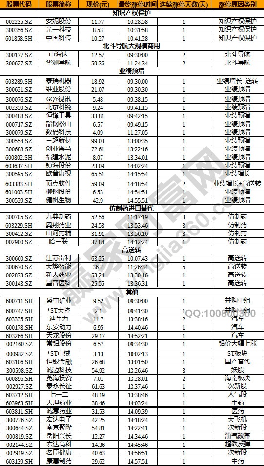 【今日除新股一字板外的漲停股】