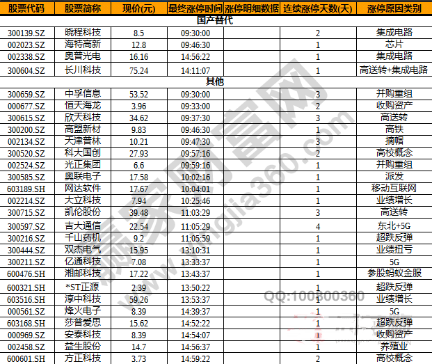 【今日除新股一字板外的漲停股】