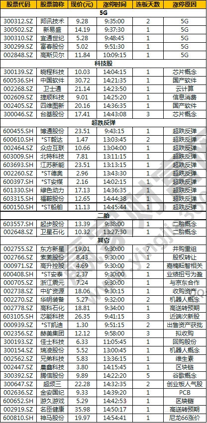 主流看點(diǎn):5G、國(guó)產(chǎn)軟件、芯片、超跌 封板效率:較高