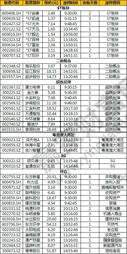 主流看點(diǎn):二胎、粵港澳、ST板塊、超跌 封板效率:一般