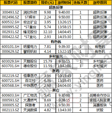 超跌反彈、有色釩、醫藥 封板效率:較低