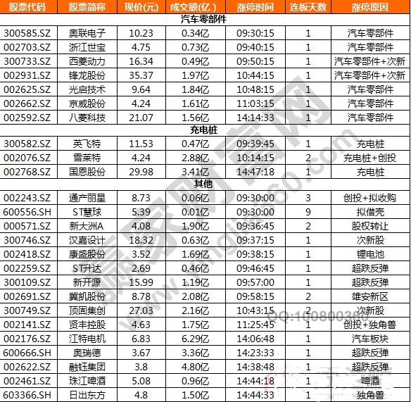 汽車零部件、創(chuàng)投、充電樁 封板效率:低