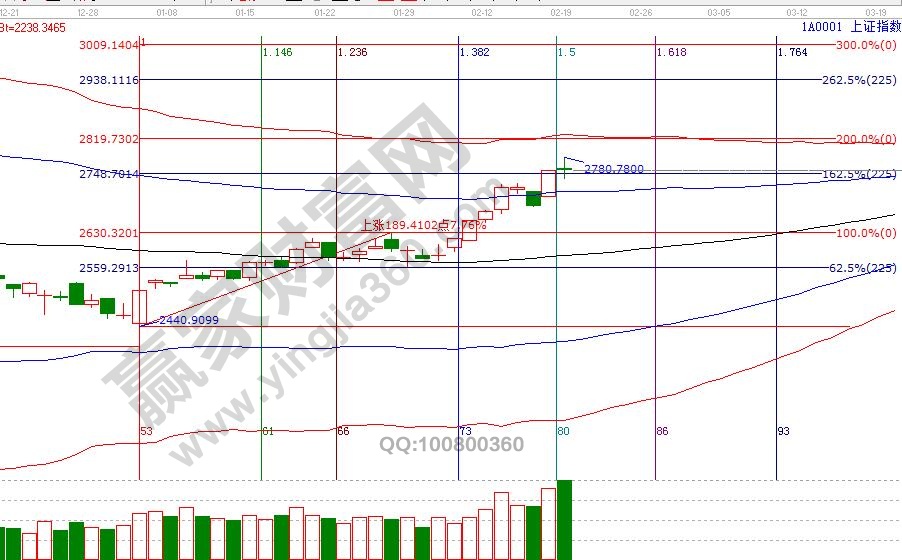 大盤在極反通道藍色上軌線與紅色外軌線構(gòu)造的超強通道內(nèi)運行,此區(qū)域代表市場熱度較強,板塊、個股均有機會輪番表現(xiàn),享受市場瘋狂的同時,但要小心瘋狂背后不斷積累的風險,目前工具還未出現(xiàn)警示信號,按規(guī)則穩(wěn)健者關注15分鐘生命線得失,激進者關注60分鐘生命線得失;空間點位上,江恩百分比、江恩價格四方形提示,2730、2720是支撐,2765、2778為壓力,時間窗口是28號。操作策略,大盤日K線從強勢通道進入超強通道,個股波動空間增大,分批高拋藍色上軌線或紅色外軌線壓力個股,倉位切換至生命線附近有量能配合的個股,整體倉位保持在5-6成。