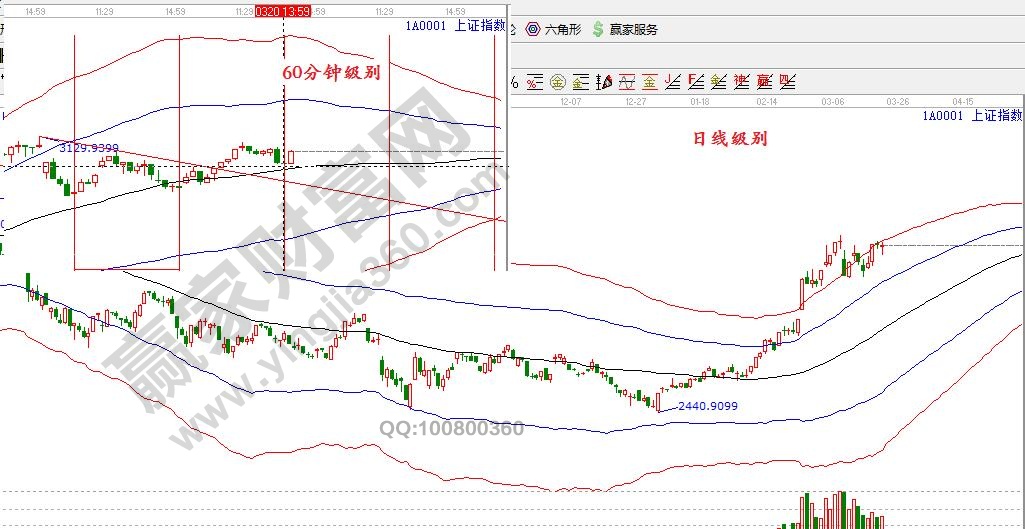 大盤日線繼續(xù)圍繞極反通道紅色外軌線震蕩運(yùn)行,短期繼續(xù)關(guān)注60分鐘生命線,不破趨勢延續(xù)。空間上,3051為支撐點(diǎn),3130為阻力點(diǎn);時間上,關(guān)注本月26日。對應(yīng)操作上,指數(shù)高位震蕩,不破3051,可繼續(xù)把握個股機(jī)會。節(jié)奏上,逢高兌現(xiàn)持續(xù)上攻遇阻品種,切換至生命線附近滯漲股,倉位保持4成。