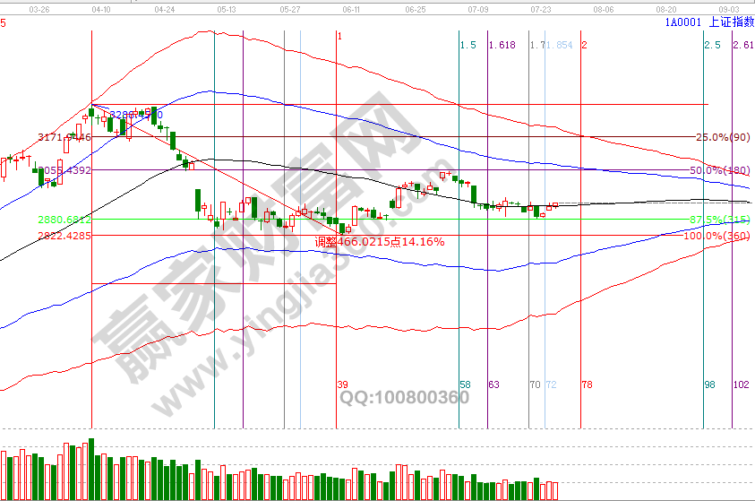 24號(hào)先行指數(shù)上證50收復(fù)短周期60分鐘關(guān)鍵位,贏家江恩技術(shù)服務(wù)老師在學(xué)員區(qū)及時(shí)解讀了此信號(hào),收復(fù)此線則代表新一波震蕩反彈動(dòng)作的展開(kāi),周四滬指日線及短周期全部進(jìn)入生命線上安全區(qū)域,需要注意的是短周期15分鐘即將觸碰極反通道藍(lán)色上軌線,預(yù)示著26號(hào)早盤(pán)沖高后會(huì)出現(xiàn)滯漲情況,從各周期線關(guān)系看反彈動(dòng)作還將延續(xù),修整是對(duì)突破日線生命線一次確認(rèn)動(dòng)作,此處反彈空間與時(shí)間維持不變,下個(gè)時(shí)間窗口是8月1號(hào),7月26號(hào)盤(pán)中壓力是225度2944點(diǎn)、270度2961點(diǎn),盤(pán)中支撐是135度2911點(diǎn)。操作策略,指數(shù)極反通道生命線震蕩,信號(hào)延續(xù)價(jià)格看60分鐘上軌線,時(shí)間看8月1號(hào),信號(hào)結(jié)束為上證50失守60分鐘生命線,整體持倉(cāng)保持3成。