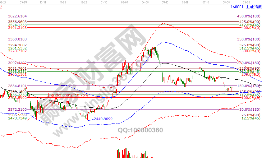 16號時間窗口指數反抽關鍵線得而復失,而先行指數上證50是收在關鍵線上,市場下個時間周期如何運行,關注好周末消息對下周開盤影響。滬指如能收復60分鐘生命線則確立6號2733反攻延續,空間指向60分鐘藍色上軌線和日線黑色生命線【贏家江恩系統學員通過工具查看點位】,反之,圍繞日線藍色下軌線上下震蕩繼續構造平臺。做出預判是為了更好的應對市場變化,提前制定計劃并按規則跟隨市場做應對,對于方向的選擇,上指50參考意義更強些。8月19號盤中壓力是315度2844點、0度2860點,盤中支撐是225度2815點、180度2800點,下個日線時間窗口是26號(24號周末)。操作策略,指數生命線下弱勢區運行,激進者3成倉交易,穩健者空倉休息。