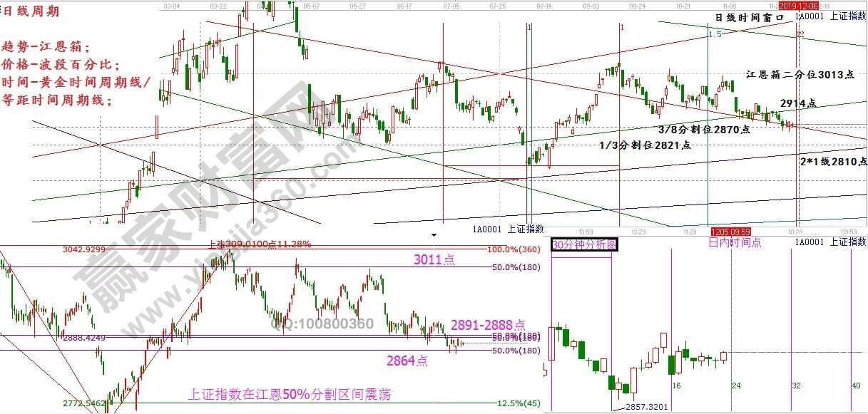 1、趨勢:上證指數跌破生命線,趨勢弱勢。指數昨日早盤觸及江恩箱3/8空間分割位2870點止跌,全天圍繞下降1*1線震蕩,隨著時間窗6號臨近,市場盤中震幅收斂到極致方向選擇在即,空間上,指數向上突破3*2線2914點則順勢做多,反之如跌破2870點快速下行挖坑,在江恩箱2*1線2810支撐尋找機會,5、6號兩個交易日重點跟蹤方向選擇,跟隨市場做好倉位應對。