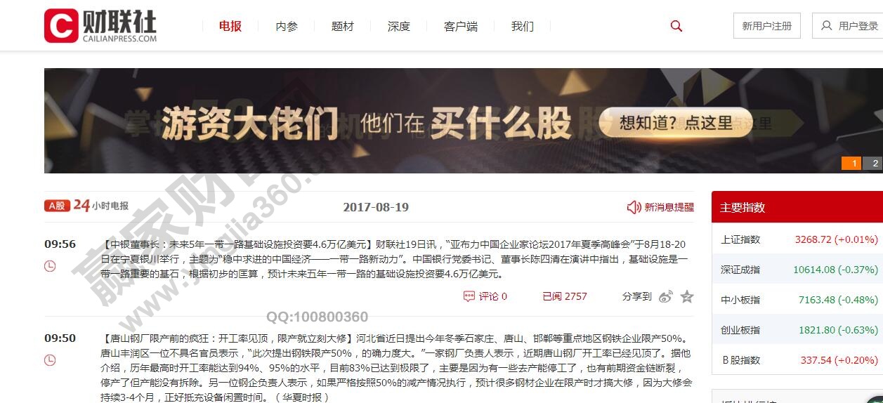 這里有一個(gè)重要的,互動(dòng)易平臺(tái)。東財(cái)和同花順都會(huì)有頁(yè)面每天總結(jié)。另外云財(cái)經(jīng)也集合了相關(guān)信息。總是要有一個(gè)時(shí)效性很高的信息平臺(tái),例如財(cái)聯(lián)社:7x24小時(shí)滾動(dòng)播報(bào),另外還有一些app,里面會(huì)有最新的機(jī)構(gòu)調(diào)研的信息,這也是一個(gè)很重要的動(dòng)態(tài)。
