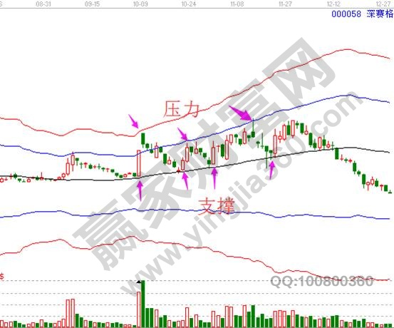 對于支撐和壓力出現的位置,在市場上有很多種判斷方式,無論是K線、K線形態、技術指標或者江恩理論、道氏理論等都可以給出明確的支撐和壓力位置,圖上是江恩軟件的極反通道給出的支撐和壓力位置,從市場運行中可以看出非常的準確。關于支撐和壓力出現的位置這里不做贅述,下面介紹支撐和壓力的具體使用。