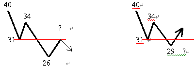 2、支撐和壓力之間的價格空間也是判斷強度的重要因素。如果一支股票的價格是從40下跌,一直下跌到了31位置,隨后反彈到34位置;但是下跌趨勢不改,反彈后再次下跌到26位置;那么現在更為重要的壓力位置就是31位置;出現另一種情況是從34下跌的力度不強,僅僅下跌到29位置后就反彈,這時31位置壓力就不太重要了。