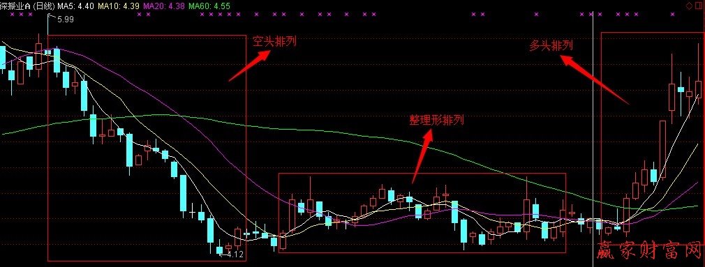 根據均線排列的不同關系,我們大體可以分為空頭排列、多頭排列和整理形排列三種。