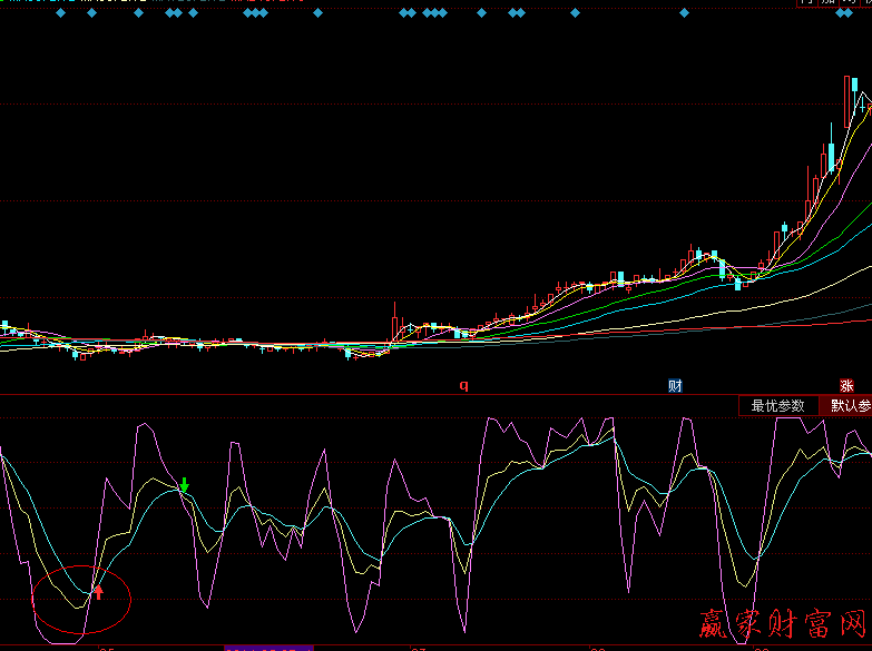 隨機指標的最大優點之一就是對背離現象的分析。但是,投資者需要注意的是,絕不可只重視背離現象分析而把基本的趨勢分析扔在一邊。大多數精于隨機的人都明白,隨機指標的買入信號處在上升趨勢中更靈驗,而隨機指標的賣出信號處在下降趨勢中更有效。投資者在分析市場的時候,首要的是確認市場的一般趨勢,如果趨勢向上,則應采取買入的策略,然后再利用隨機指標的幫助來尋求入市時機。當市場在上升趨勢過程中處于超賣狀態時(技術指標向上穿越0線),投資者可買入。