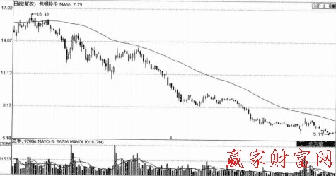 在其后的一年行情中,該股走出了連續下跌的行情,雖然期間有反彈,但都沒有突破60日均線。