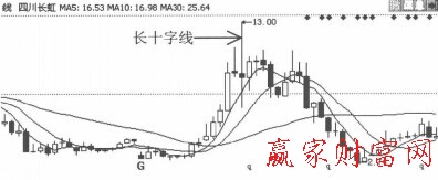 在上漲初期出現長十字線后,如果日后重心上移,可持股,如果重心下移,要果斷離場。