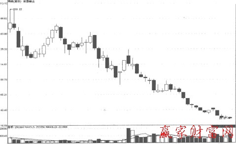 在整個(gè)下跌趨勢(shì)運(yùn)行過(guò)程中,市場(chǎng)會(huì)一直處在空方力量整休上強(qiáng)于多方力量的狀態(tài)下,在這種市況下,多空雙方經(jīng)一周的交鋒之后,一般來(lái)說(shuō),空方會(huì)取得一定的勝果,這就休現(xiàn)在周K線的陰線形態(tài)上。其實(shí),下跌趨勢(shì)正是以周K線的連續(xù)小陰線及經(jīng)常性的大陰線作為主要標(biāo)志的。