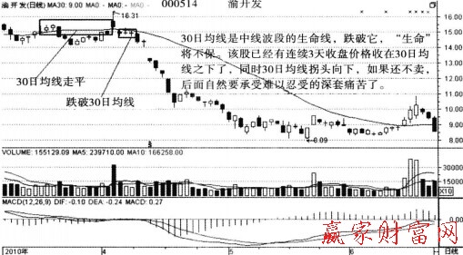 4.在應用30日均線做市場分析時,要密切注意10日、20日均線的變化,因為10日、20日均線的變化最終要導致30日均線的方向改變。