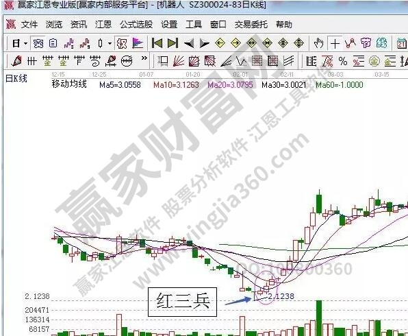 想要了解更多關于紅三兵的知識可以直接點擊紅三兵形態(tài),豐富自己的K線形態(tài)儲備。