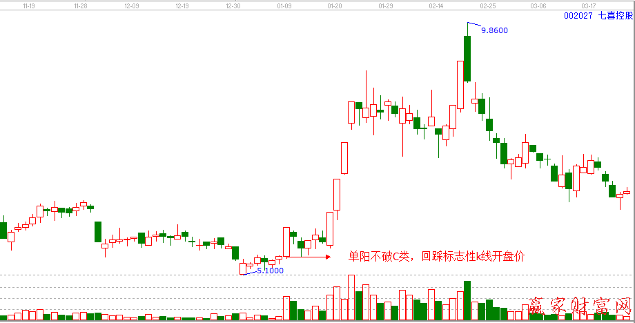 2)平開:如回探不能跌破標(biāo)志性k線50%位置