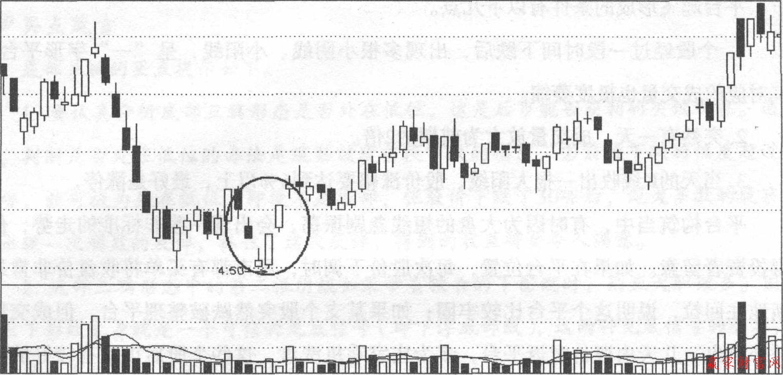 1.股價(jià)或指數(shù)在短時(shí)間內(nèi)出現(xiàn)兩個(gè)跳空缺口,這兩個(gè)缺口的方向是相反的,其中前一個(gè)是向下跳空缺口,而后一個(gè)是向上跳空缺口。