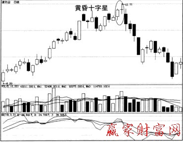 出現黃昏十字星時,若伴隨看成史量的迅速放大,則說明這是主力的最后出貨行為,投資者應及時獲利出局,進免風險。大家還可以學習一下有關底部十字星的知識。
