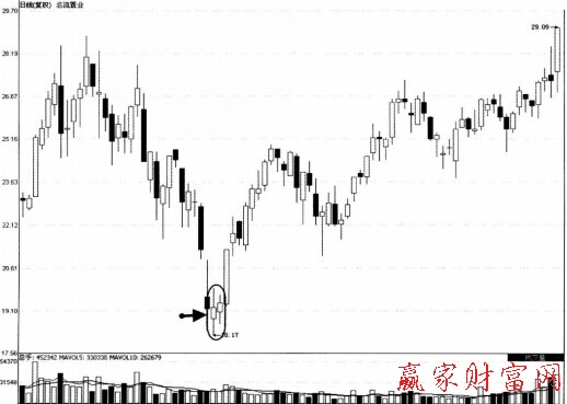 對于低檔雙陽長影線K線組合,在階段性的低檔位,連續出現了兩個上下影線相對較長的陽線形態,這種形態說明多空雙方在盤中的交鋒力度較大,且多空雙方均在盤中發起了攻擊,但陽實體的出現表明在收盤時仍是多方占優,而且個股當前又正處于階段性的低點,是市場拋壓相對較輕的區域,預示了一波較為強勢的反彈上漲走勢將在莊家的策動下出現。