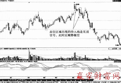 處于高位的待入線多是見頂信號,處于低位的待入線可能是見底的信號。高位待入線確認以后,賣錯也要賣;低位待入線出現以后,只有確認向上才可買。
