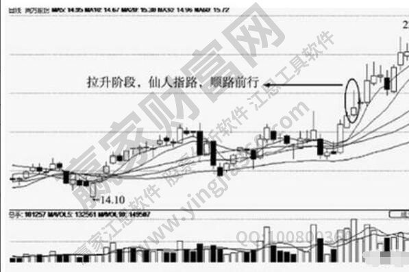 3.突破重要障礙。突破重要阻力位時應(yīng)該出現(xiàn)仙人指路形態(tài),突破時往往不退到底,此時可信度最高。