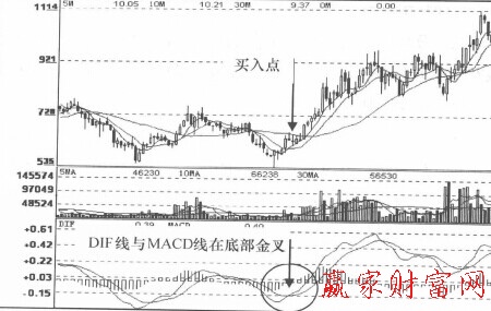 在運用的時候,日線均線系統與周線均線系統安全,股票運行的形態良好,成交量比較活躍。當MACD指標周線走勢圖中的DIF線和MACD線出現金叉時,說明股價中短期走強,可以在本周或下周的日線中,根據MACD指標的買入法則選擇最佳買點。