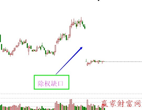 除權缺口是由除權、除息引起股價變動而形成的。由于制度因素等原因,股價在上市公司轉增或配送股后導致流通股數增加,必須對股價除權,表現為在除權價與股權登記日的收盤價之間的跳空。