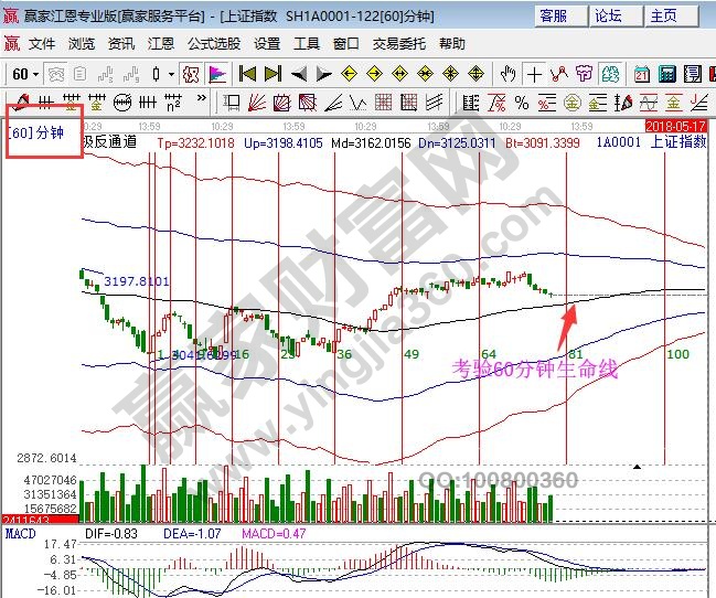 滬指60分鐘生命線3140附近得失影響著行情上攻是否結束,15分鐘破生命線是上攻動能減弱,而60分鐘為生死線。
