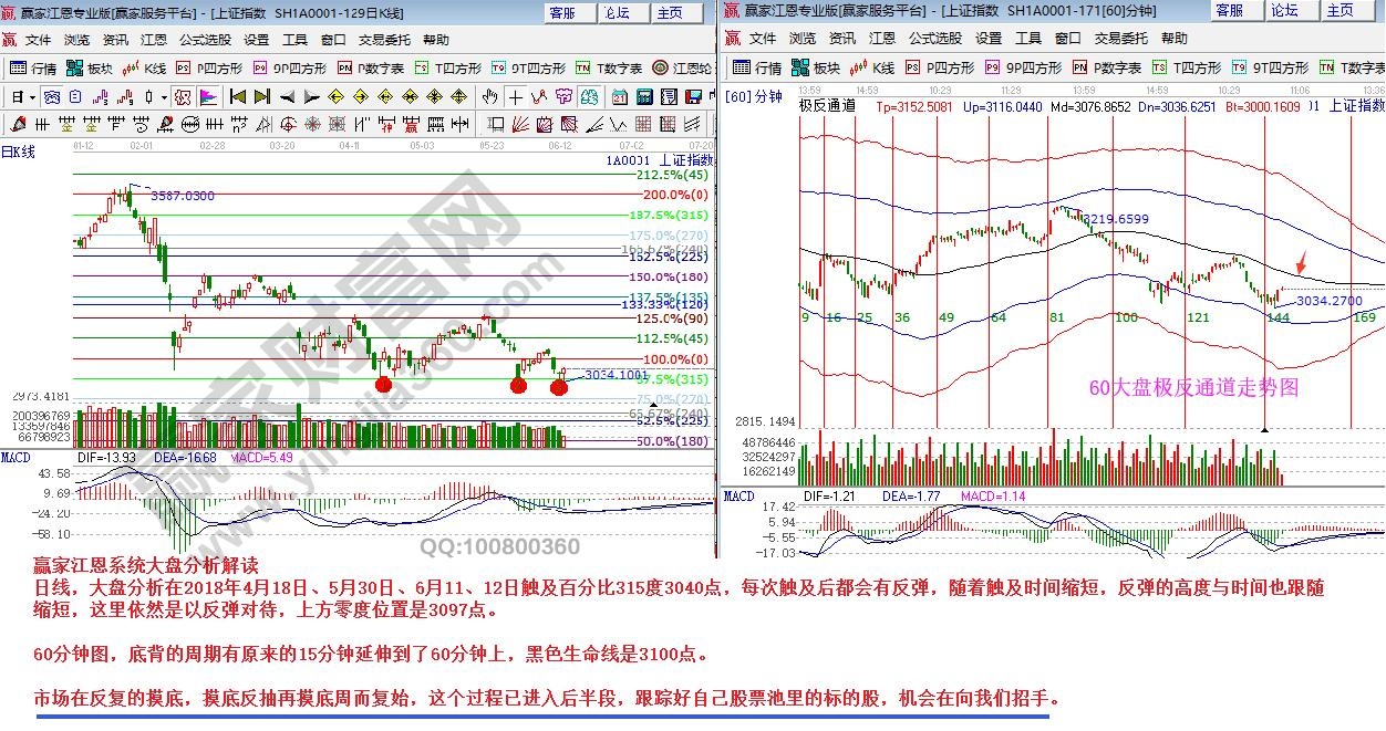從近期大盤日k線走勢(shì)看,2018年4月18日、5月30日、6月11日及今日共四次下破3040點(diǎn),每次觸及后都會(huì)有反彈,今日也不例外,隨著下破的時(shí)間縮短,反彈的高度與時(shí)間也隨之縮短,午盤在市場(chǎng)總龍頭亞夏汽車封板帶動(dòng)下,激活市場(chǎng)做多人氣,此位置依然以反彈應(yīng)對(duì),破新低反抽再破低點(diǎn)周而復(fù)始,反復(fù)摸底,隨著時(shí)間的推移,上證50指數(shù)日K線有轉(zhuǎn)好跡象,這是一個(gè)積極信號(hào),我們會(huì)繼續(xù)跟進(jìn)。